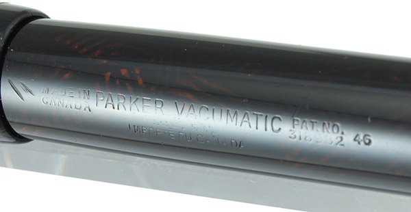 Manufacturer and Year Parker, the barrel is marked Canada but the nib is marked USA – 1936 (The imprint on the barrel is clear, but there is no date code visible on the nib). In the US, this model (with the retiuclated barrel) was only made from 1936 to 1937. We're not sure about Canada.