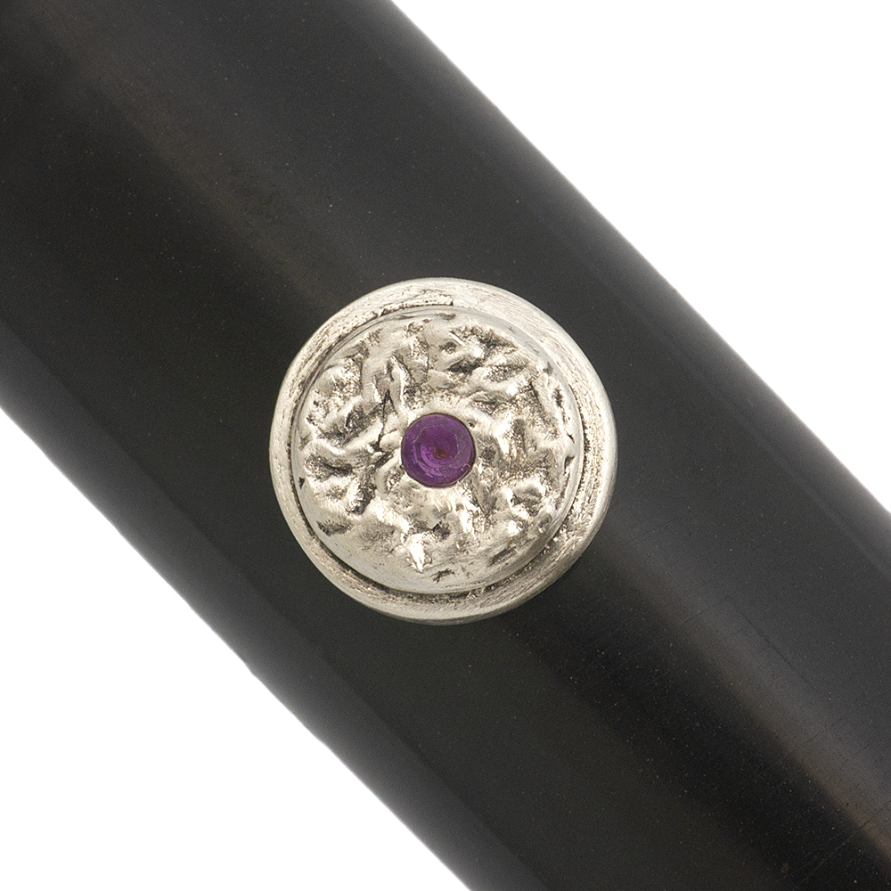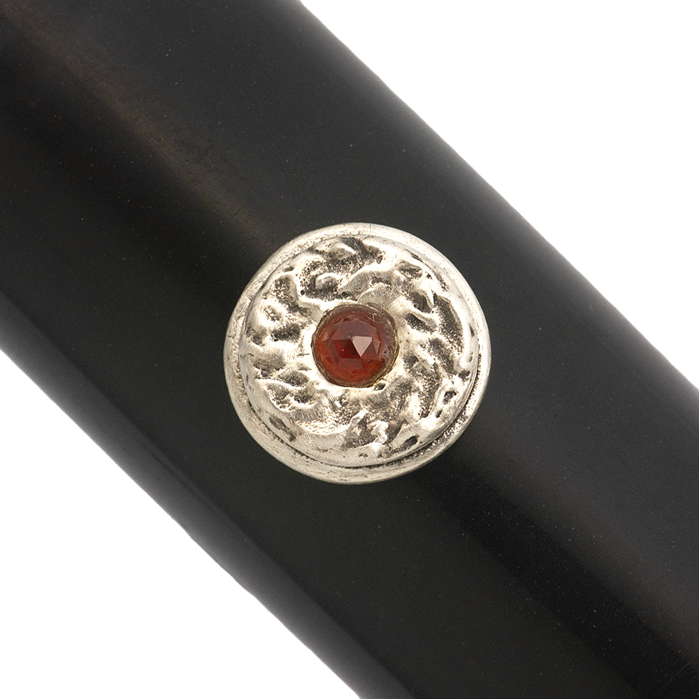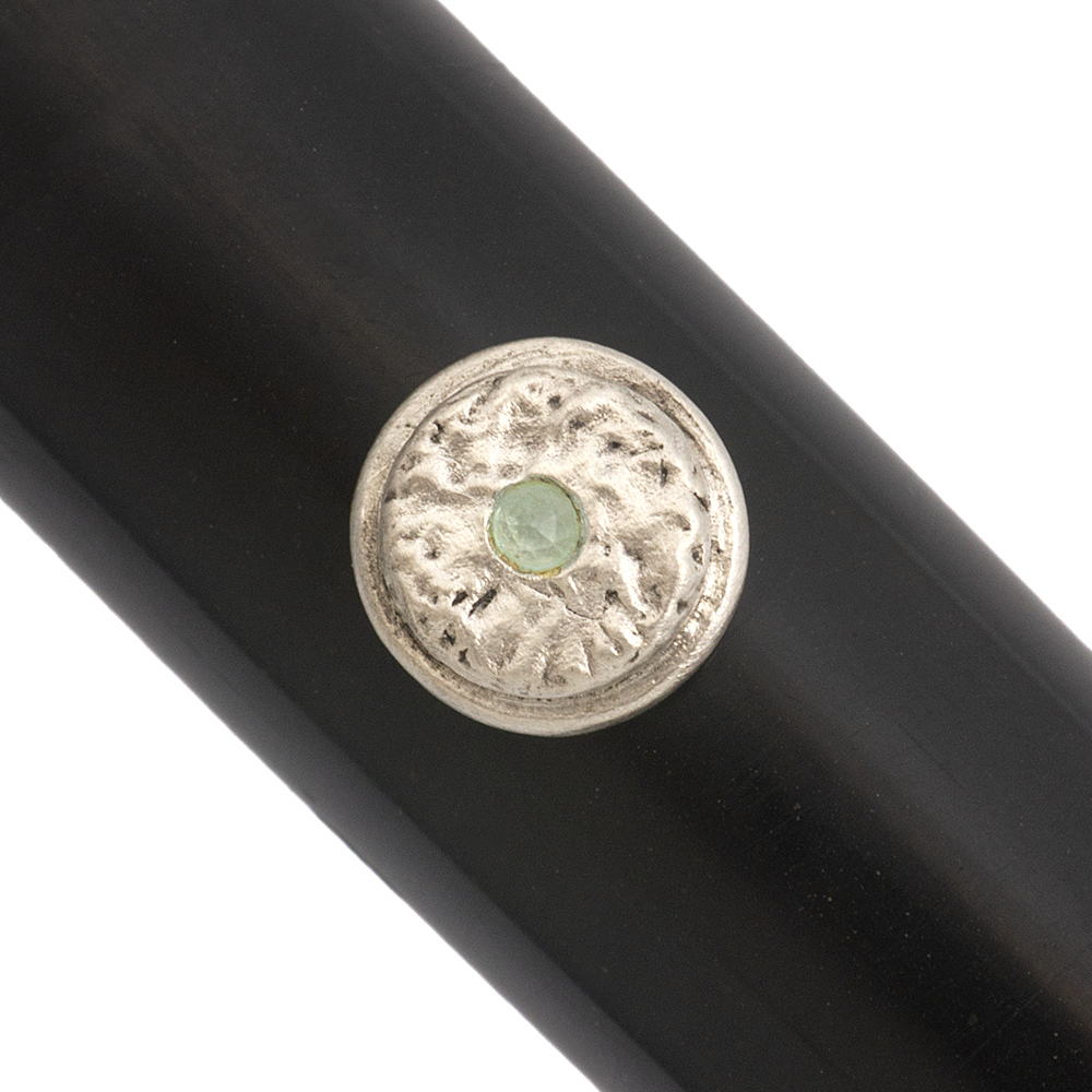 These .38 inch round rollstops have a curved back for fitting to a rounded pen cap, and a textured interior with a semi-precious stone in the center.