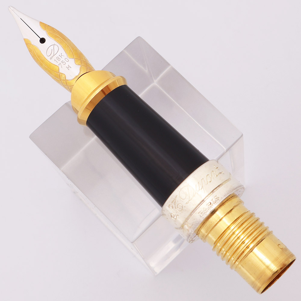Color The nib is a two-toned 18k nib. The middle part of the section is black and there's a gold colored nib collar at the front and then a silver colored ring at the back end of the section. We believe the silver nib masking is rhodium, but we don't know for sure.