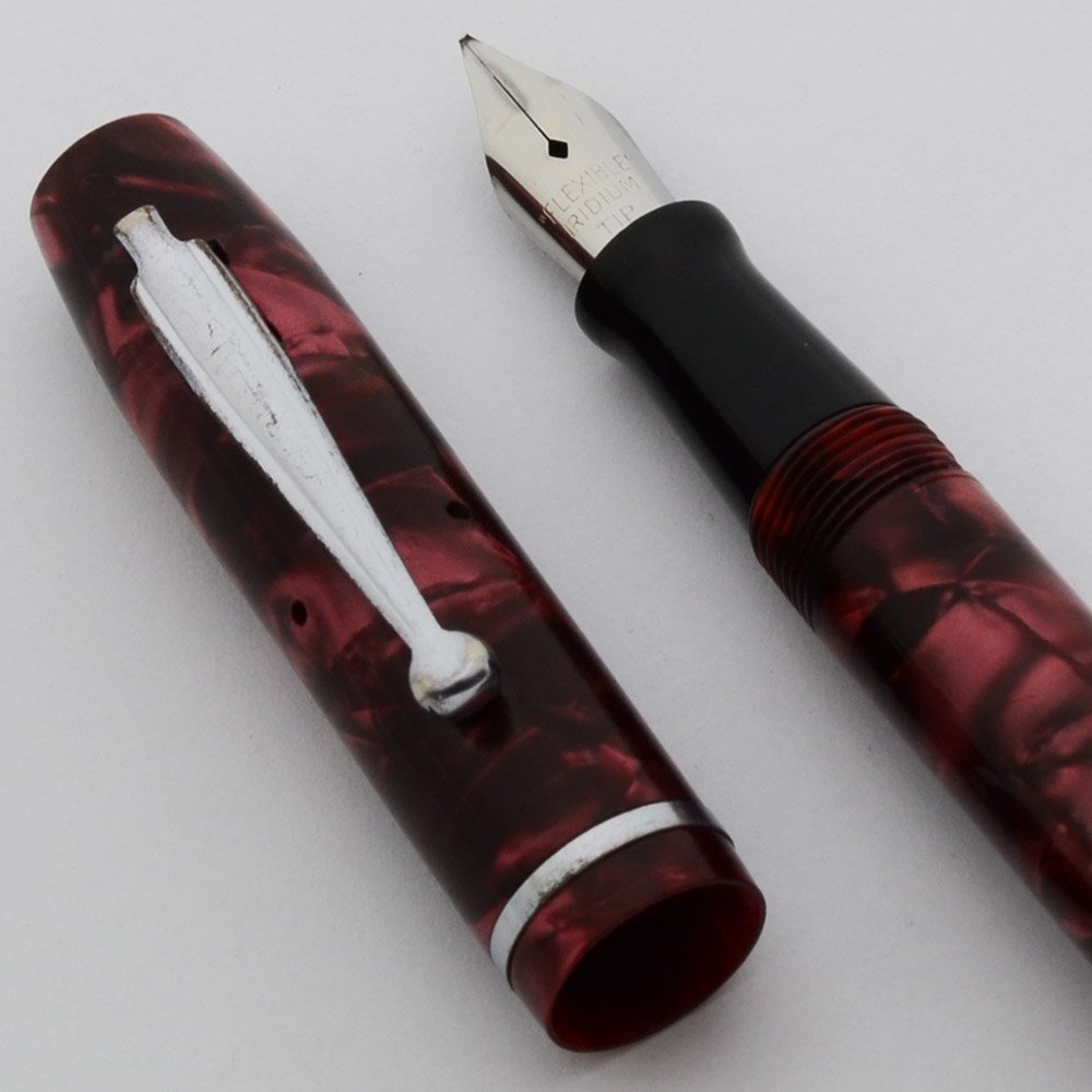 Condition Excellent condition. The trim is worn on the edges of the clip, lever, and cap band. The pen has a legible imprint and very little handwear. The barrel has many shallow bite marks. The coloring is great and there are no cracks, chips, or dents. It's working very well.