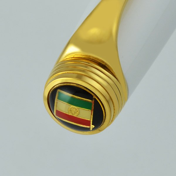 Color White pen representing the middle white section of the Italian flag. It has an Italian flag filled cap piece and gold plated trim. There are small flags on the cap band.