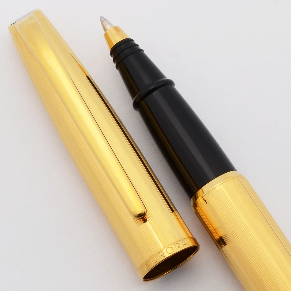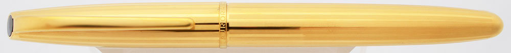 Color Goldplated barrel and cap, with black section. Both cap and barrel have a pattern of grouped lines running lengthwise.