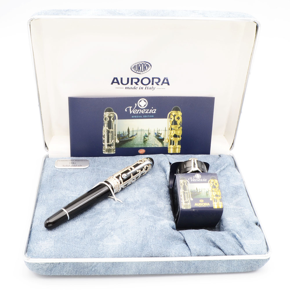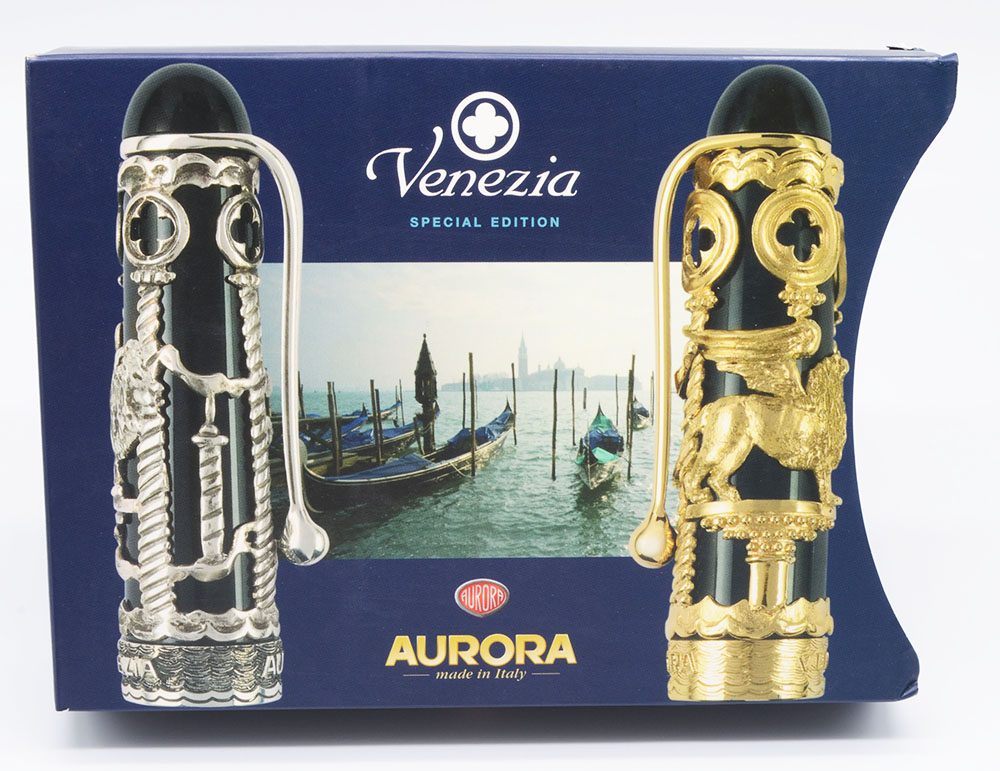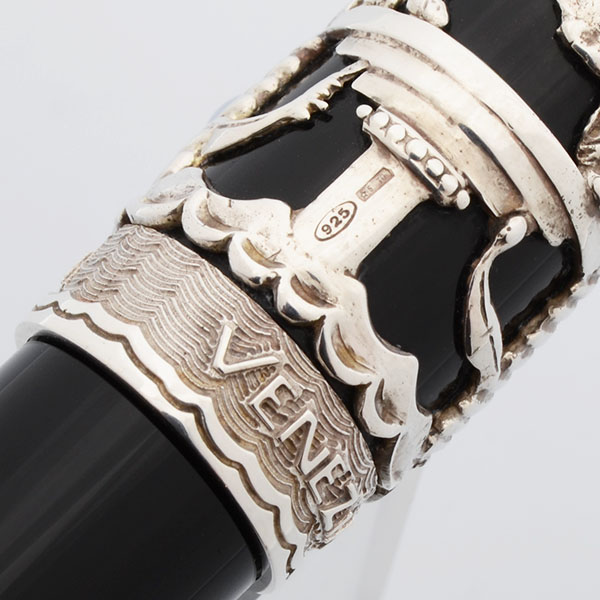 Condition Near mint in box with paperwork. The pen had been inked, but there are minimal signs of usage. No dents, dings or scratches. Tested and working well. The sterling cap overlay was created by a jewelry designer, and incorporates several important symbols of Venice, including the winged lion of St. Mark, gondolas, and Gothic stonework decorations of the Doge's Palace.