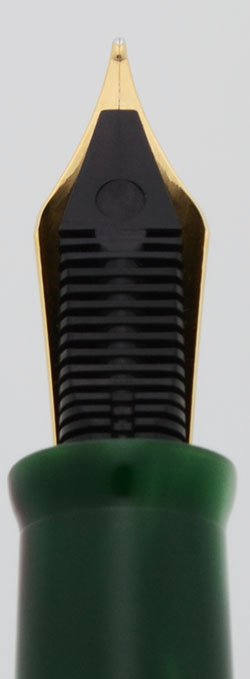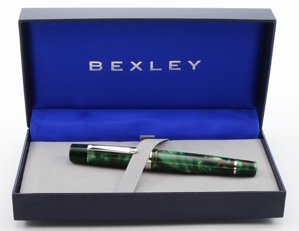 Nib Fine 18k nib. It nib is marked Bexley and is two-tone. The F on the face of the nib identifies the size.