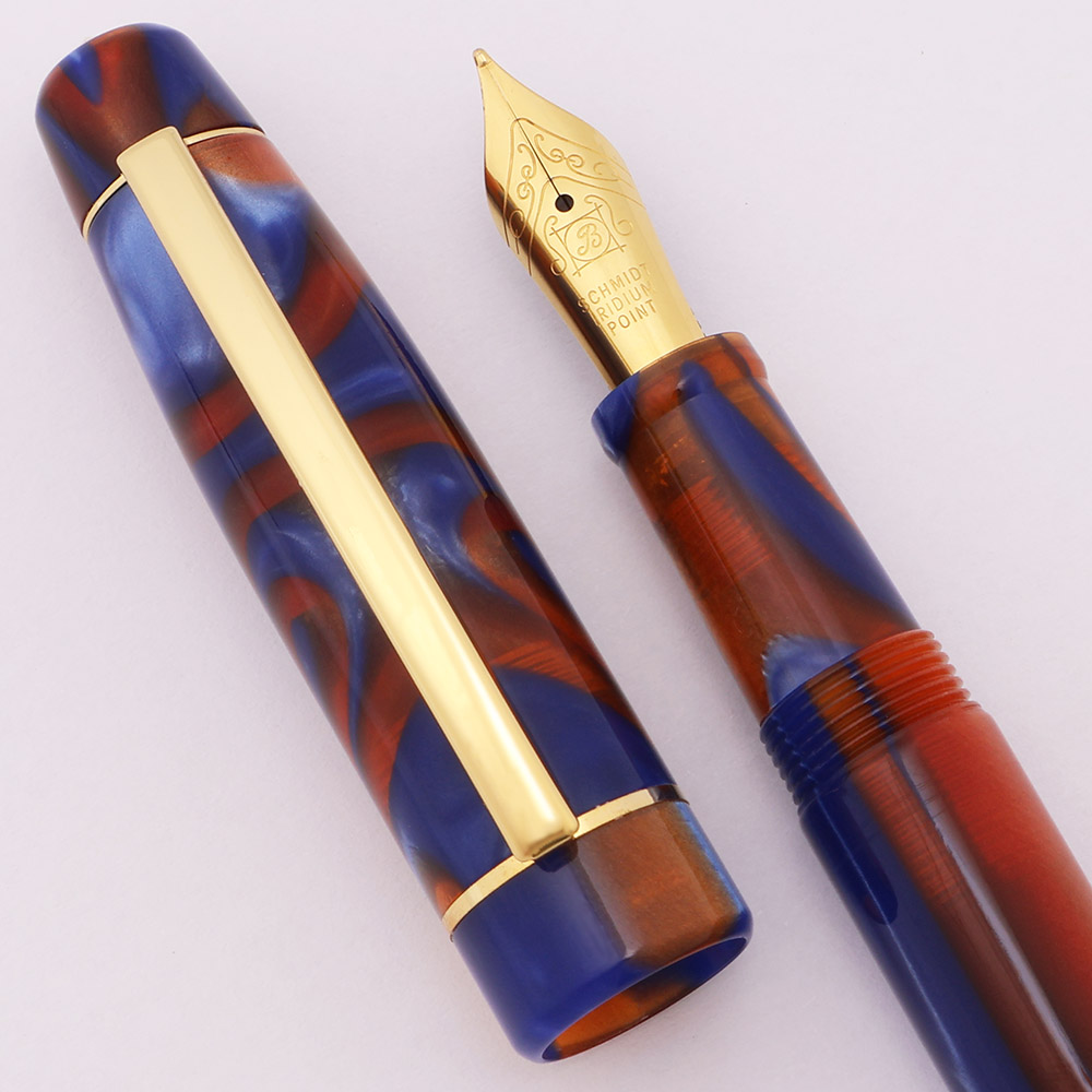 Color Blue Shimmer - lovely pearly blue with brown swirls. Gold plated trim.