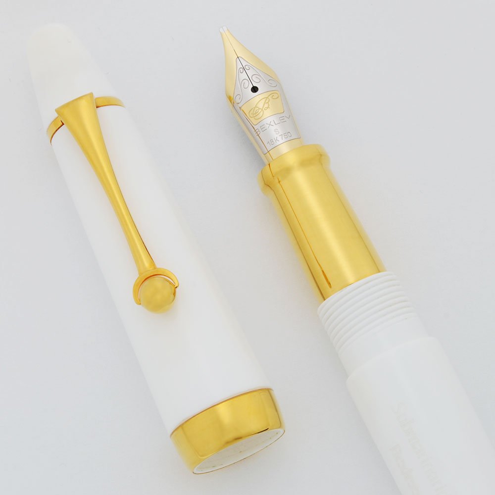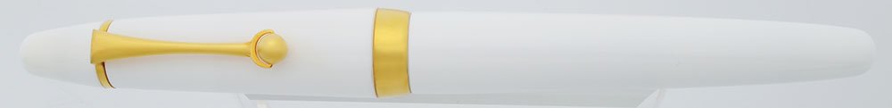 Color Pure white cap and barrel with gold plated trim and a gold plated section. The cap has a wide smooth gold plated cap band and a matching clip.
