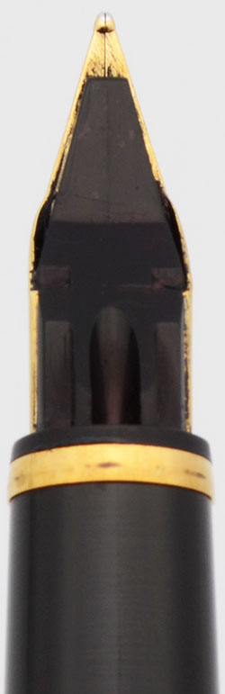 Color Brushed stainless steel and gold-plated, according to the label on the box. The gold color seems like it's the base, with steel insets on the faces. Gold-plated clip. Black section with a gold-plated trim ring just behind the nib.