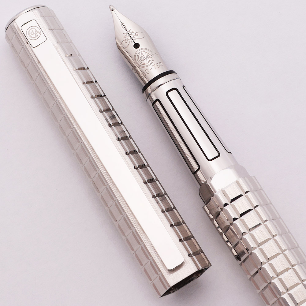 Condition Near mint condition, in box, with paperwork, and with two ink cartridges. This is a gorgeous glinting, shimmering pen that is nicely weighted and very elegant. The cap and barrel look fantastic and the hexagons are all intact and beautiful. The clip has some light microscratching and some very tiny dots of plating wear. The imprints are clear.