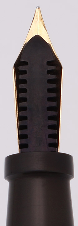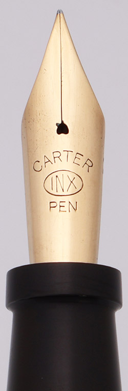 Nib FINE gold nib labeled Carter INX Pen. It is a big nib, somewhat soft, but no real flexibility.