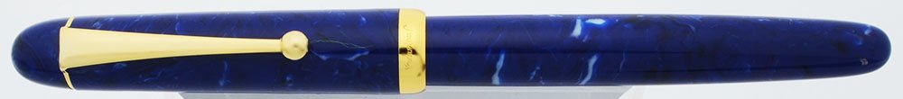 Color Lapis blue celluloid with gold plated trim. The color is a marbled deep ocean blue, light blue, and midnight blue -- very beautiful.