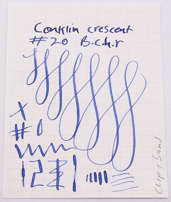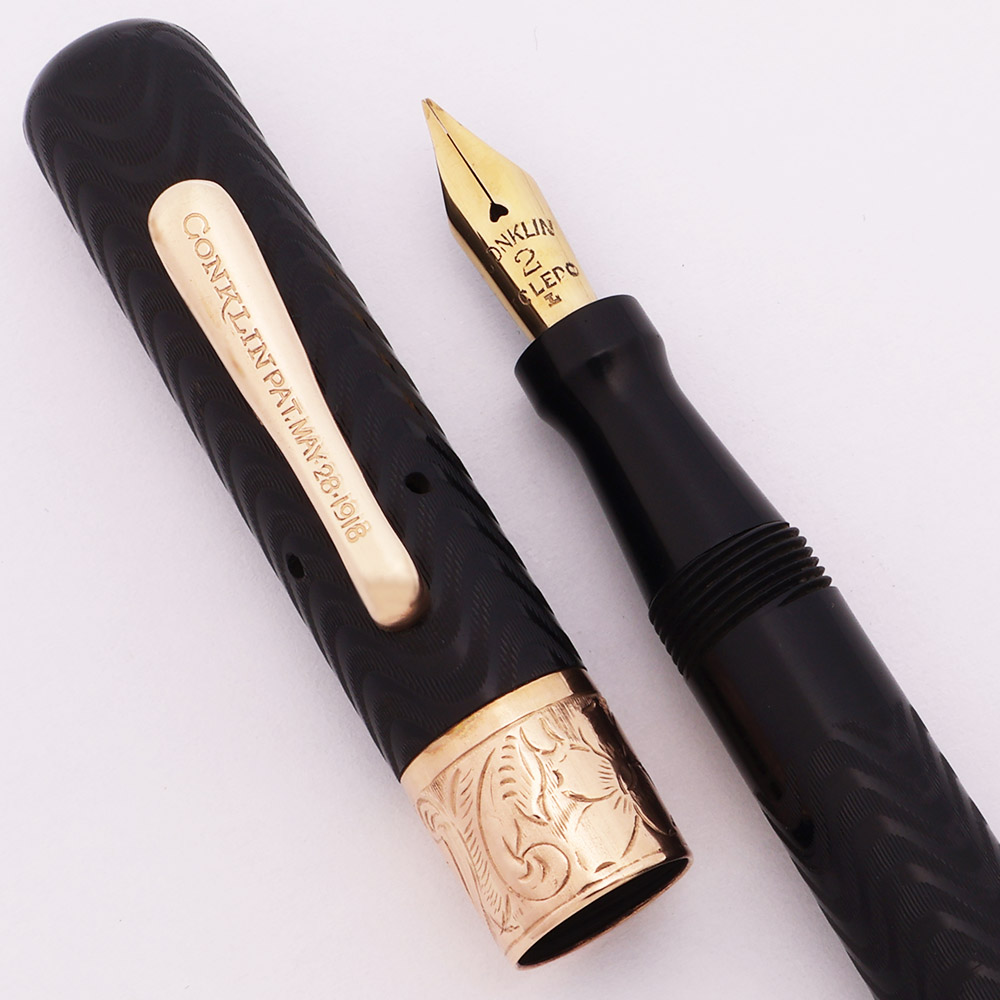 Nib MEDIUM-FINE FLEXIBLE Conklin #2 Toledo gold nib is very smooth with nice tipping. Nicely flexible, not quite full flex, with very easy line variation from medium-fine to a nice broad with hardly any pressure. See our writing sample below.