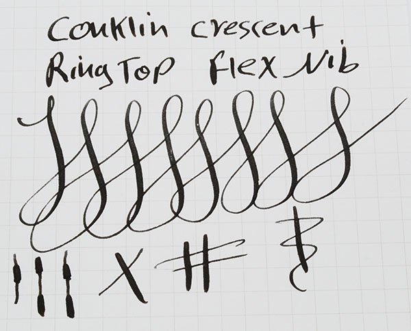 Nib FLEXIBLE MEDIUM Conklin #2 Toledo gold nib is very smooth with nice tipping. It offers nice line variation with minimal pressure. See our writing sample below.