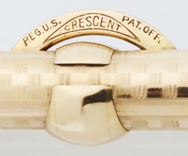 Condition Excellent + condition. No personalization and very lttle plating wear. The pattern looks great. The imprint is very clear. The locking mechanism beneath the crescent moves well. The crescent imprints are clear. The color of the hard rubber is firmly black. There is a small dent at the end of the barrel. It's fully restored and working well.
