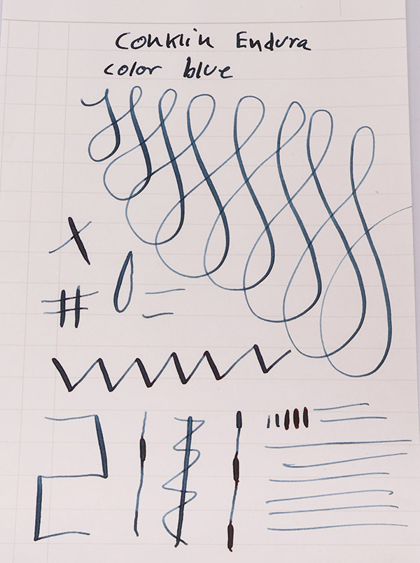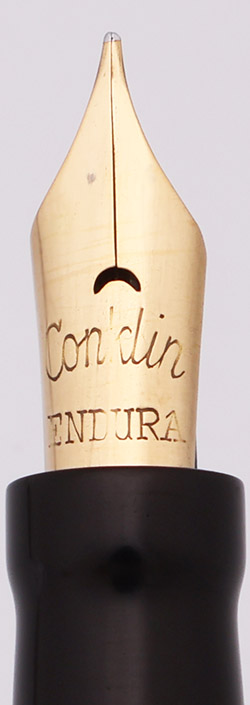 Nib MEDIUM semi-flexible gold Conklin Endura nib. Kind of unusual for an Endura nib. See our writing sample in the photos below.