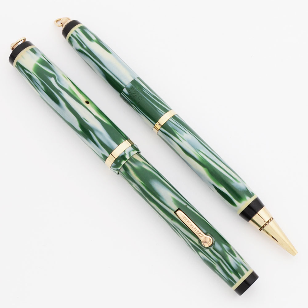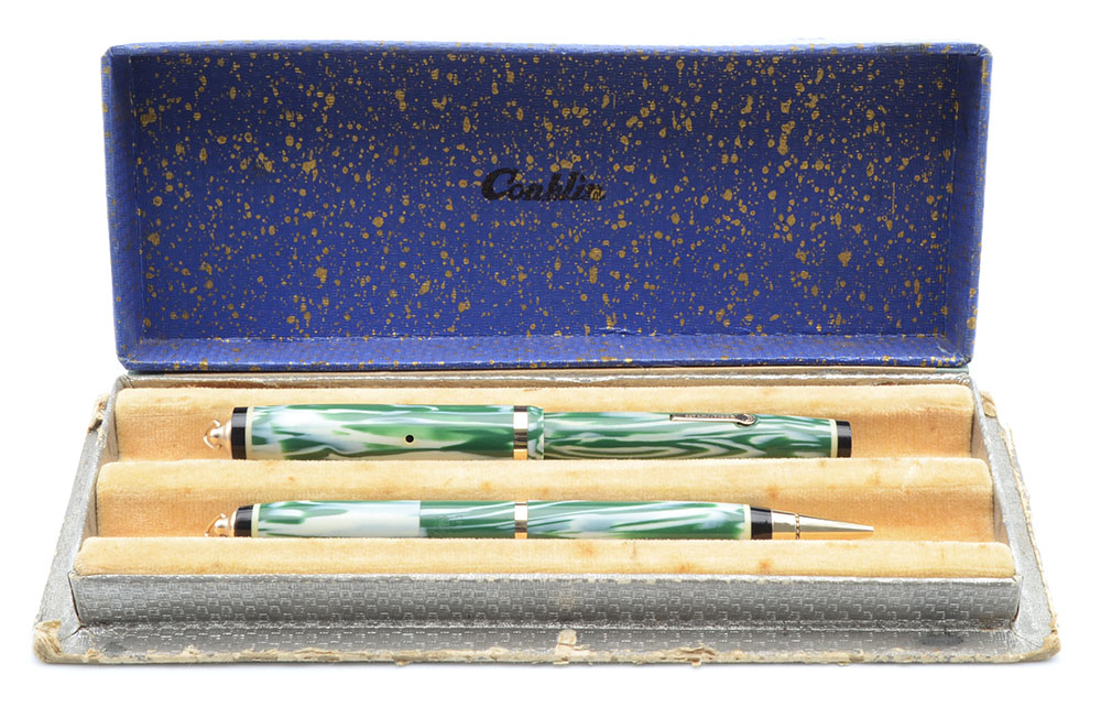 Manufacturer and Year Conklin, Toledo, Ohio, USA -- 1932 (Our Conklin reference book says that Conklin's 1932 catalog introduced this green and white color)