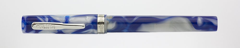 Condition Near Mint condition. The cap band has some tarnish and there's a few black marks on the clip imprint. There is a shallow scratch beneath the cap line on the barrel and a few similar marks on the cap. The swirls hide the scratch and marks very well. The pen is in really lovely condition with no cracks, chips, dings, dents, or personalization.