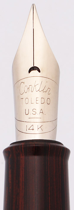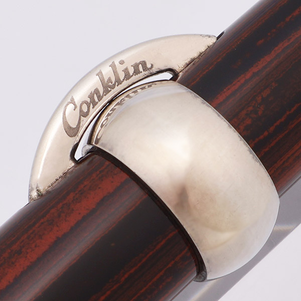 We noticed that the clip is a little odd - the "Conklin" that's engraved on it doesn't look like what we usually see (normally evenly stamped, and oriented differently than what's here), and instead appears to have been hand done? We can only find one other picture of this pen, and can't confirm the clip details on that one, so it's hard to say what's going on.