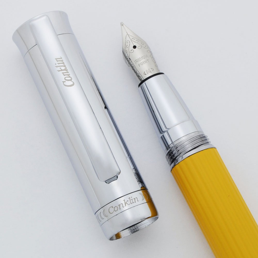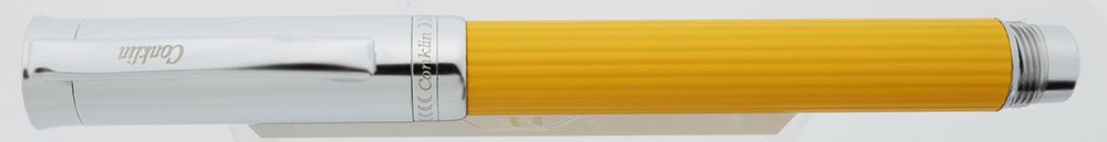 Color This color is "Lemon Yellow" and is a nice goldenrod. The barrel is ridged and lacquered. Rhodium plated section, cap, and end piece.