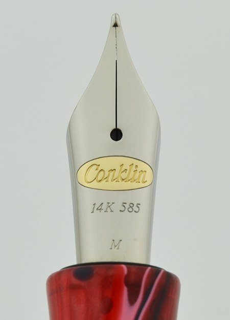 Condition Excellent + boxed condition. The acrylic is in great condition. No cracks, chips, scratches, dents or marks. The weakness of this model, like many Conklin modern pens, is the trim. There is a bit of plating loss on the bottom of cap band, not due to wear or usage. The imprint is crisp.