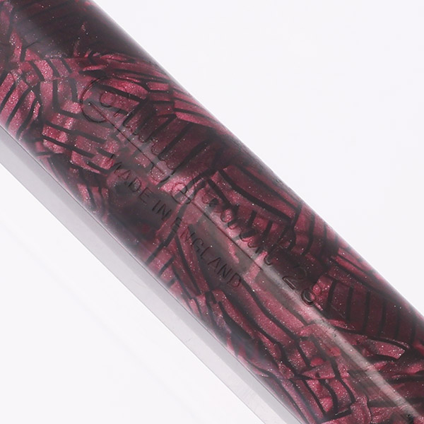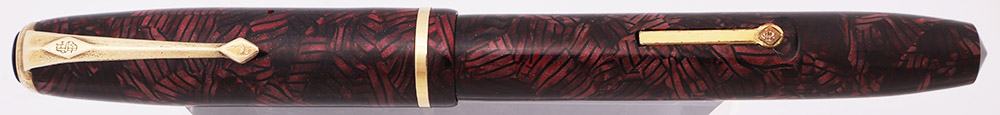 Condition Excellent nice condition with no cracks, chips, dents, or dings. This is a beautifully colored and patterned pen that is shiny and that is in a classic design. The cap and barrel have moderate scratching. The barrel has marks caused by the cap lip, and a few short marks. The lever has long, thin scratches and a few small dots of plating wear. The cap band has light microscratching. The clip has plating wear on the diamond end and some light pitting along the sides. The clip tassie has plating wear and two scratches along the edge. The black end jewel on the cap looks good. The end of the barrel has a cluster of small scratches. The imprint is clear.