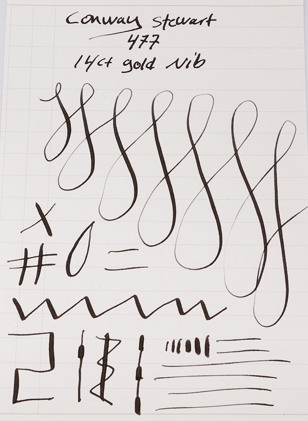Nib Medium 14k CT gold nib is smooth and flexible. See writing sample.