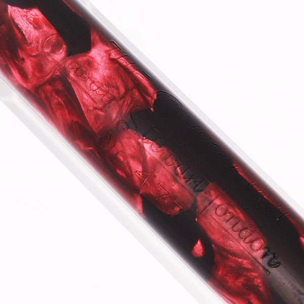 Condition Excellent condition with no cracks, chips, dents, or dings. The cap and barrel coloring is strong. There is light scratching on the cap. The cap rings has light scratching and touches of brassing. The clip has light scratching and brassing on the face, with plating wear along the sides. The clip ring is brassed. The cap finial has some scratching along the sides. The section has largely faded to a dark brown. The barrel of the pen has light scratching, and some marks near the section from the cap lip. The lever has plating wear and brassing. The imprint is clear.