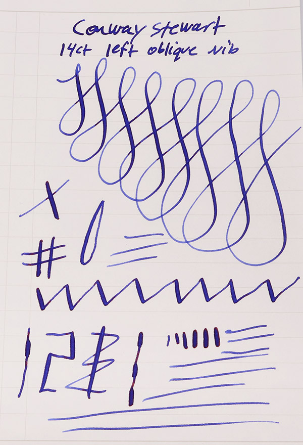 Nib MEDIUM-BROAD flexible 14k nib with a left oblique cut. Please see writing sample below.