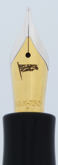 Nib Medium two-toned 18k nib. It is marked "M".