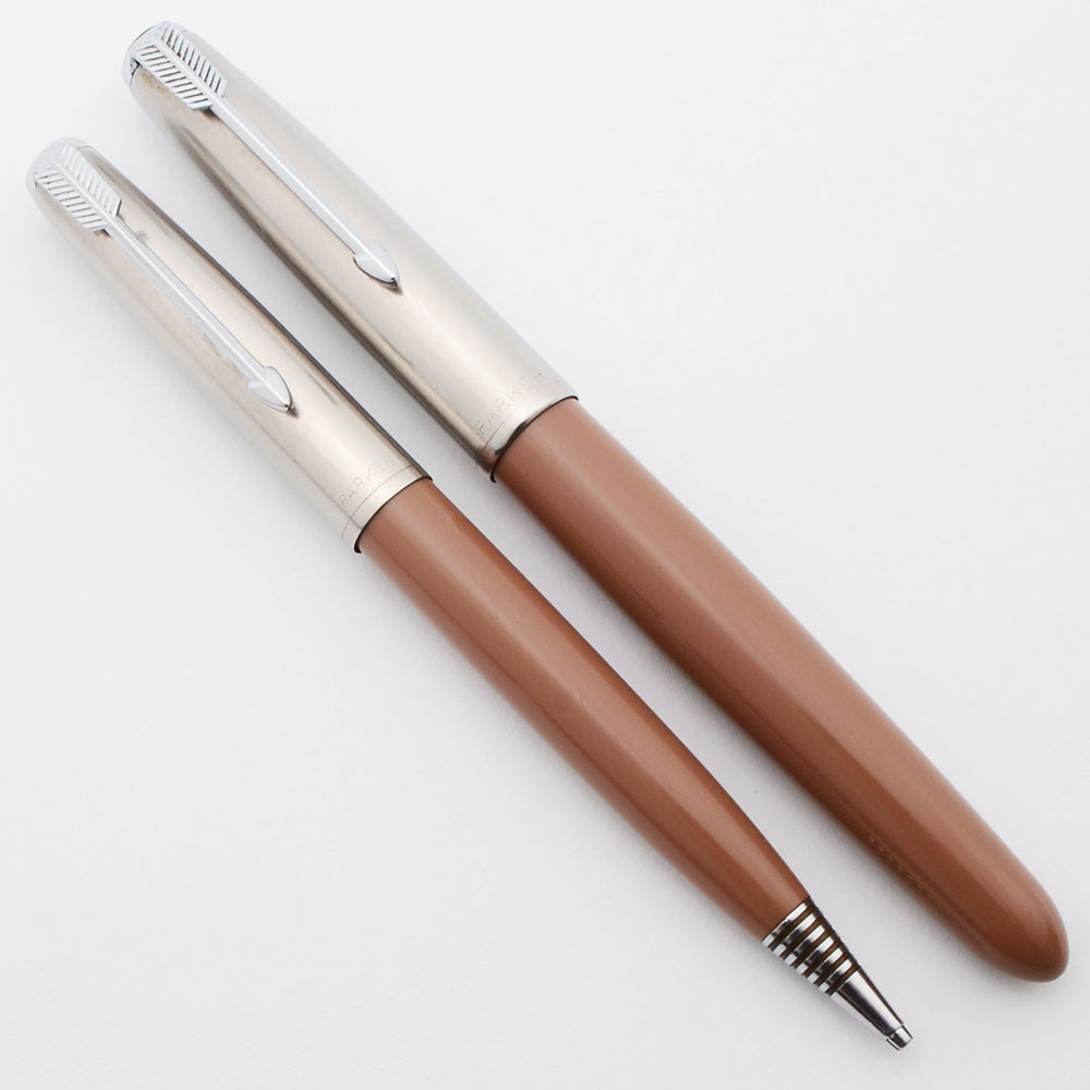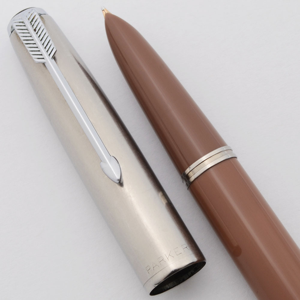 Color Cocoa with stainless steel "Lustraloy" caps and arrow clips. Pearlescent cap jewels.