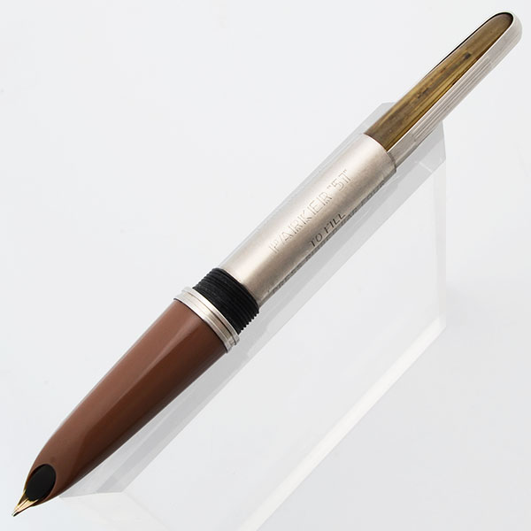 Manufacturer and Year Parker, made in USA -- 1951 (There is a 51 date code on the pen, though the "5" is mostly smoothed down and really only visible with magnification and just the right lighting. The 51 is very clear on the pencil; the cap has protected this imprint very well)