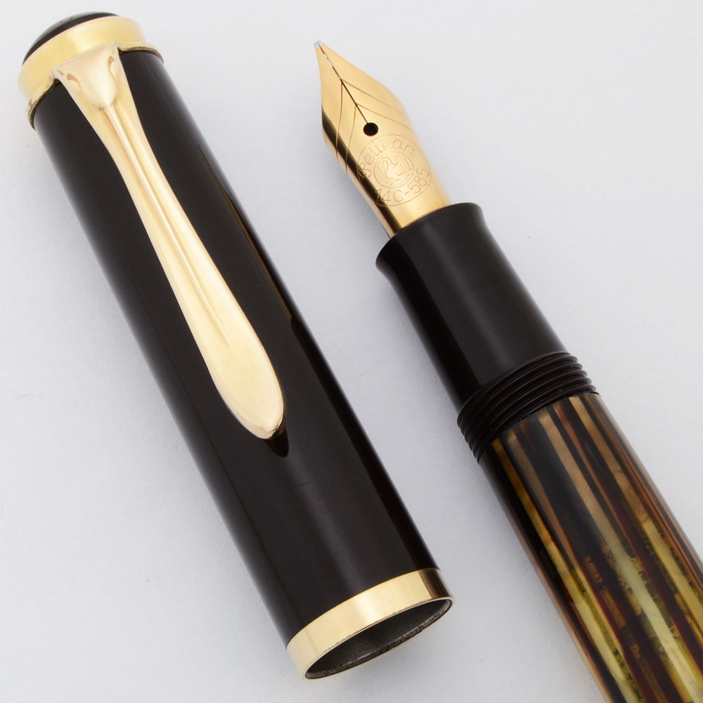 Color Dark brown cap, tortoise striped barrel. Gold trim.
