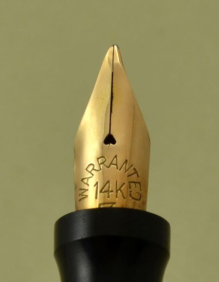 | Nib | Gold Warranted #3 nib is a little worn but has good tipping material. Excellent flex, almost full flex. |