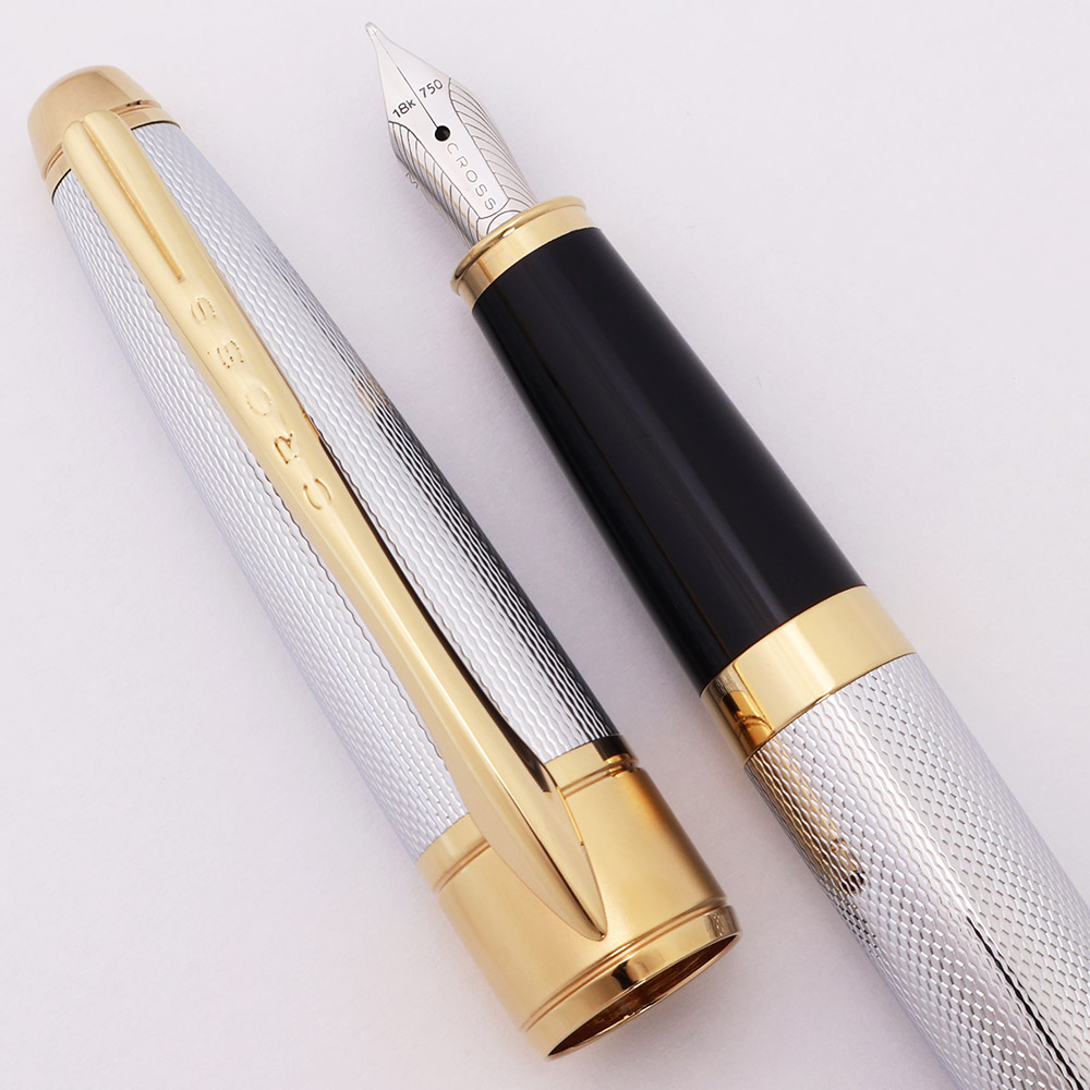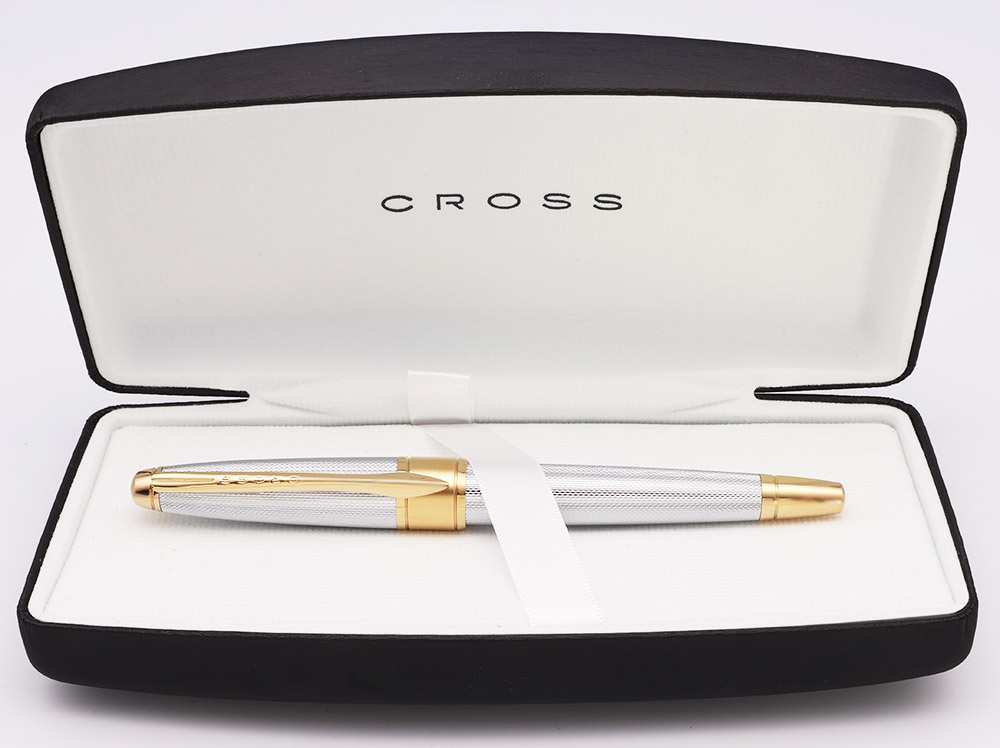 Color Medalist - this is a common Cross designation, and refers to the silver colored body with gold-plated trim. Here, the silver portions have a barleycorn design and are chrome plated. The clip, finials, cap band, and section trim are all gold-plated.