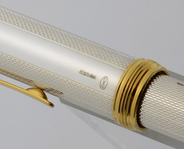 Color Sterling silver cap and body with an etched barleycorn pattern. The pen also has 22k gold plated trim and a cartouche area for personalization.
