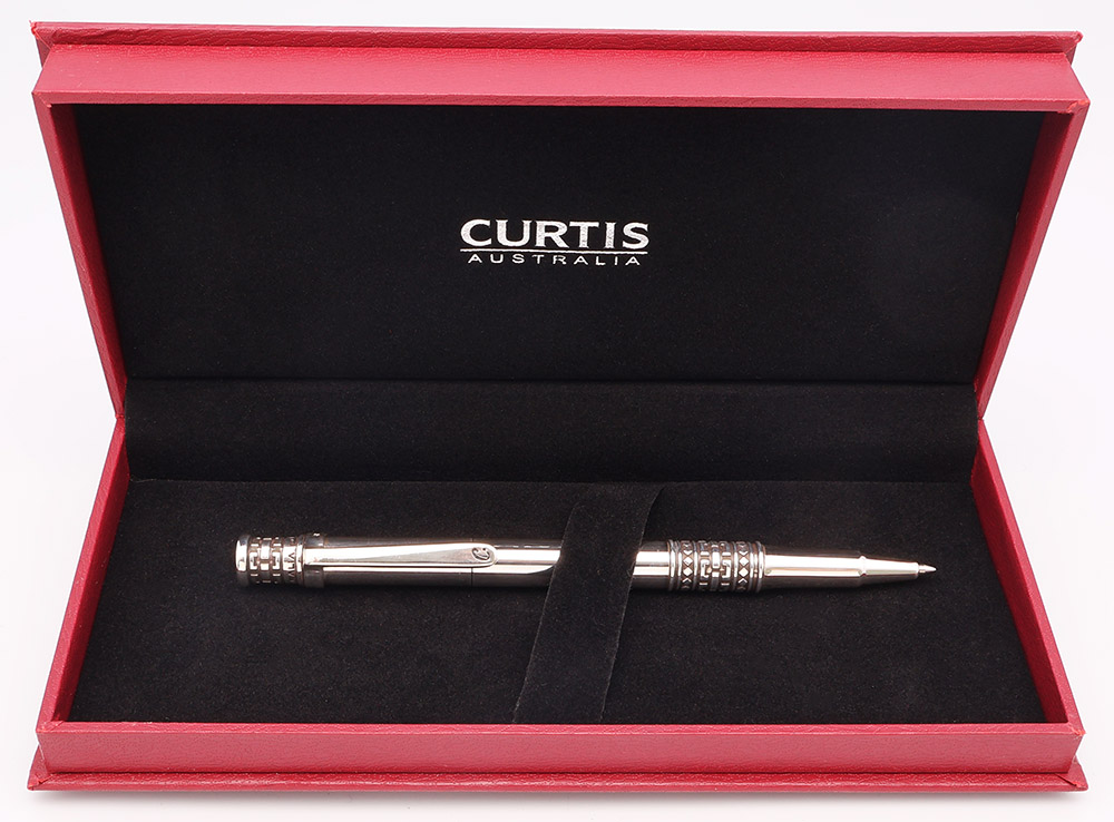 Condition New in box, no dents or dings. There are some spots of tarnish. The box has some shop wear and the hinge is broken. The pen is working well.
