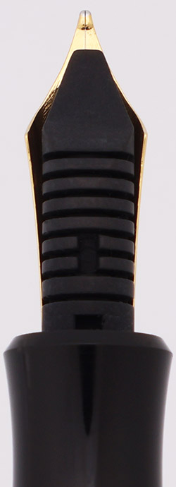 Nib MEDIUM (not marked, but that is our judgement of the nib size) 18k, two-toned nib.