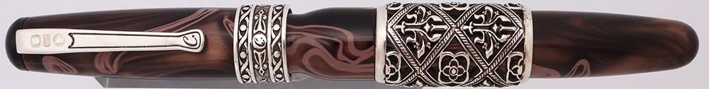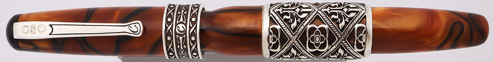 Color The body and cap is made of beautiful colored resin, with elaborate trim and band work in sterling silver. The barrel has a wide decorative band in a pattern that Curtis calls "Regal".