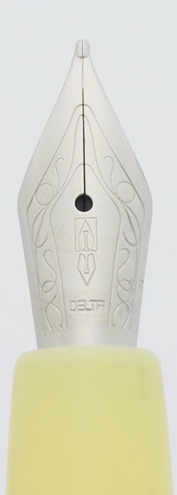 Anni Senttanta is Delta's tribute to the colors of the 1970's - who can forget the rust, harvest gold, and avocado? There were also warm neutrals, like this lovely ivory color. The cap is topped with a translucent dome. The pen also features shiny rings around the cap and barrel, and a clip, all of which are polished and palladium plated.