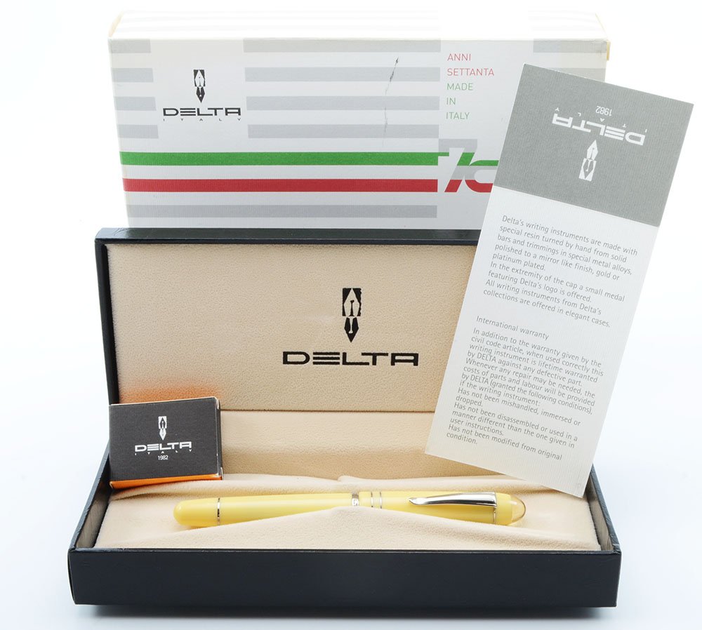 Condition New and in mint condition, though the outer box is shopworn. The pen is pristine; our inspection found no evidence that the pen was ever inked or used. Ships in a Delta gift box with papers.