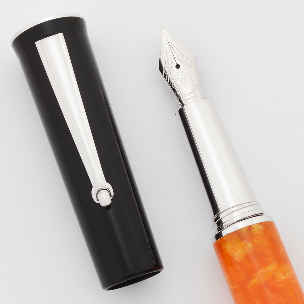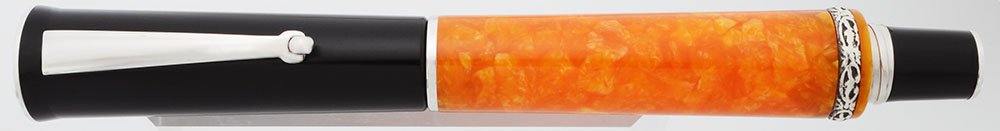 Color Black and bright golden cracked ice resin. The caps flare at the top. The sections are silver colored. The clips are platinum plated and barrels have sterling silver bands.