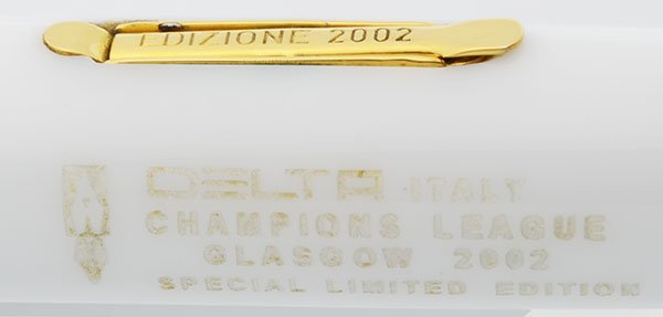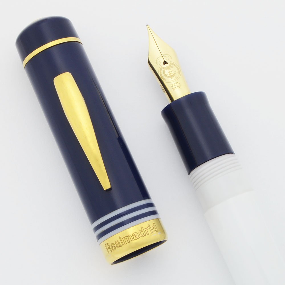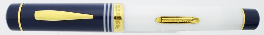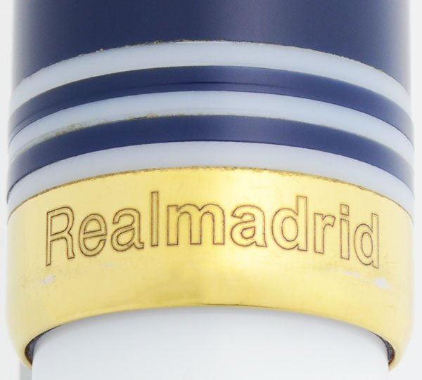 Color Dark blue and white resin to match Real Madrid's official colors. The trim is vermeil (gold plated over sterling silver), clip and cap band. The clip is hallmarked but the cap band is not.