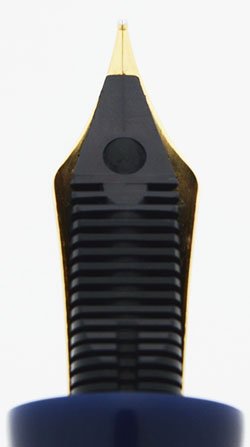 Nib Fine 18k nib. The nib is smooth and slightly springy. According to its official page, it is gold plated over the solid 18k nib. The F on the side of the nib is a bit worn.