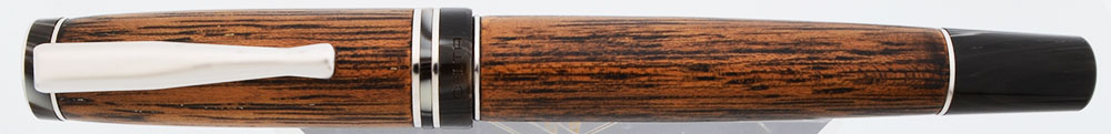 Color African Iroko wood, also known as African Teak. This is the dark shade. The section and end finials, as well as a cap band, are made of a complimentary colored brown and ivory resin. Chrome trim.