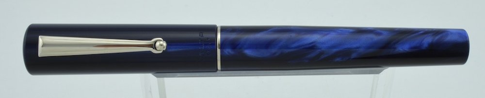 Color Deep blue resin cap and barrel in a beautiful subtle swirl of shades, with chrome plated trim.