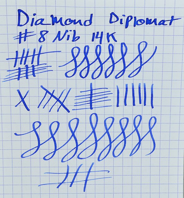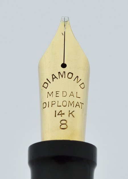 Nib STUB, very smooth and wet #8 Diamond Medal Diplomat nib. Excellent condition with lots of tipping material. See writing sample below.