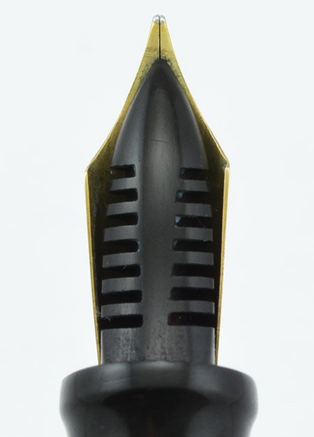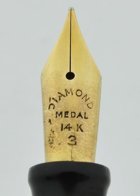 Nib FINE 14k gold Diamond Medal #3 nib is very smooth with nice tipping. There is a crack at the base of the nib as shown in the photos but this has no effect on its writing becausde the nib does not flex and put stress on the crack. (Fairly firm nib.)