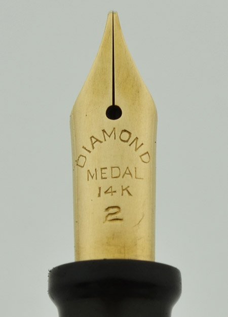 Nib Medium-Fine italic 14k gold Diamond Medal #2 nib is very smooth with nice tipping. The imprint is very clear. See writing sample.