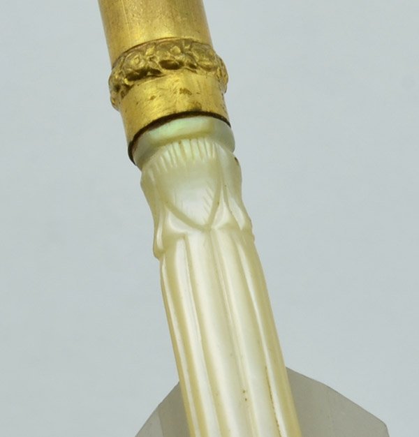 Color Lined ivory colored celluloid, with gold plated end pieces.