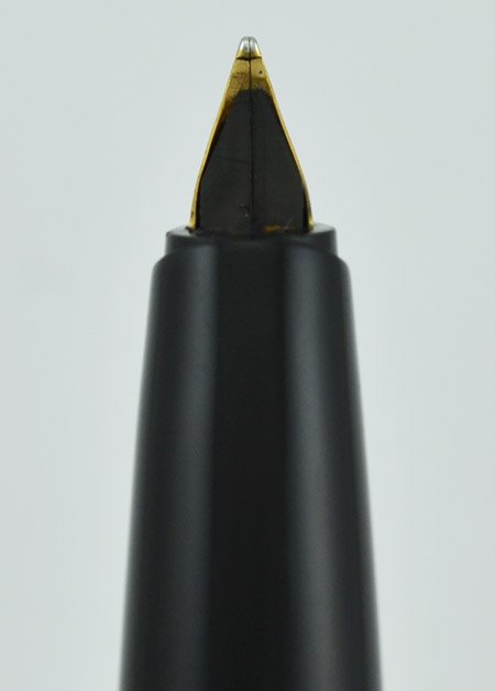 Nib 14k Medium nib. The nib is unlabeled and we didn't remove the nib to verify whether or not it has a 14k imprint, but it's springy and is not from the era that Montblanc made steel nibs. All of our other Dunhill fountain pens from the 1980s have had 14k nibs as well.