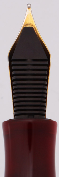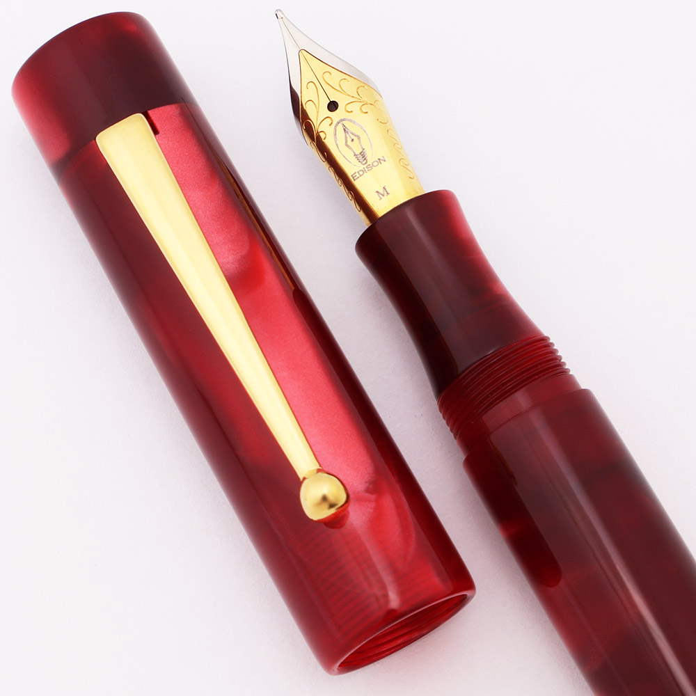 Color Red Acrylic with lovely pearlescence. Gold plated clip. No cap band.